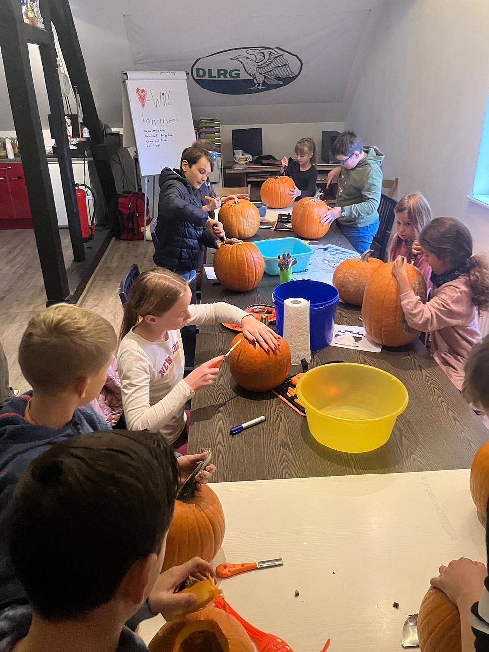 Am 25.10.25 fand unser traditionelles Kürbisschnitzen im DLRG Vereinsheim statt. Alle Kinder hatten riesen Spaß und genossen die gemeinsame Zeit.